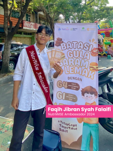 Untuk itu, Jibran termotivasi untuk mengikuti program NutriWISE 2024 ini untuk dapat mengedukasi masyarakat di daerahnya dengan mudah. Terlebih, Jibran juga melihat program ini memiliki jangkauan yang sangat luas yaitu terdapat gerakan pembatasan GGL serupa yang dilakukan oleh NutriWISE Ambassador lainnya di daerahnya masing-masing.
